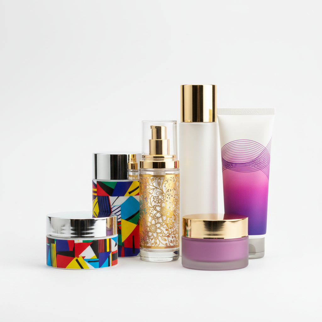 Kozmetik kapları, parfüm şişeleri, krem kavanozları, ilaç ambalajları, gıda kapakları ve kimyasal ürün ambalajlarına özel çözümlerimiz, marka imajınızı güçlendirir. Özel şekilli ürünler için özelleştirilmiş tutucular (mandrel), otomatik yükleme-boşaltma sistemleri ve inline laklamalarla komple dekorasyon hatları sağlıyoruz. Pantone renk eşleştirme, test baskıları, mürekkep formülasyon desteği ve düzenli bakım programları ile üretim kalitesi sürekli en üst seviyede tutulur.